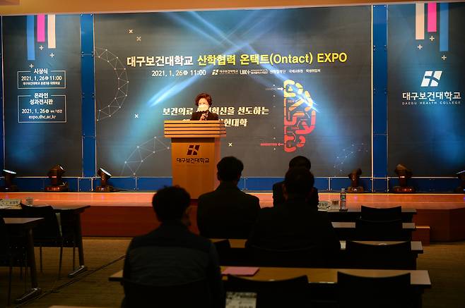 대구보건대는 26일 본관 3층 대회의실에서 지역산업체 관계자와 교직원, 재학생 등 50여명이 참석한 가운데 온택트(Ontact) 산학협력 Expo를 개최했다고 밝혔다.