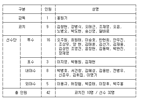 이 밖에 투수 김재웅, 김동혁, 박관진, 내야수 신준우, 이명기 등도 처음으로 스프링캠프 명단에 들었다.