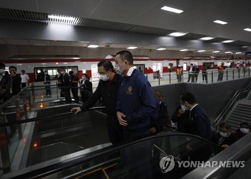 epa08967854 Thailand's transport minister Saksayam Chidchob (C) attends the new Red Line suburban railway test run at the Bang Sue Grand Station in Bangkok, Thailand, 27 January 2021. The Bang Sue Grand Station will serve as a hub for a high-speed train connecting airports of Don Mueang airport, Suvarnabhumi airport and U-Tapao airport. The new transportation Red Line suburban railway will open for service in late 2021. EPA/NARONG SANGNAK