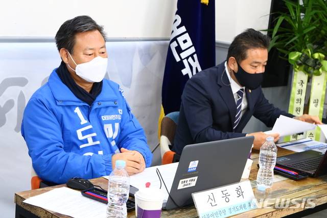 [구리=뉴시스]이병훈 기자 = 더불어민주당 국가균형발전특위 경기추진본부는 27일 경기도의원 예비후보 신동화 선거사무소에서 언택트 화상회의로 발대식을 개최하고, '경기도의 완전한 균형발전'을 위한 힘찬 출범을 선언했다.