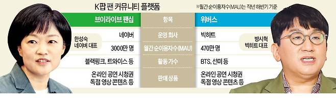 글로벌 K팝 팬 커뮤니티 플랫폼 시장을 두고 네이버와 빅히트 간 경쟁이 치열했다.