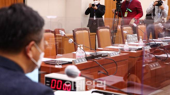[이데일리 방인권 기자] 27일 오후 국회에서 열린 법제사법위원회 전체회의에서 국민의힘 의원들이 박범계 법무부장관의 청문보고서 채택에 반대하며 회의에 참석하지 않아 자리가 비어있다.