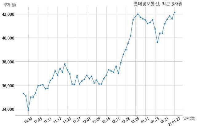 한편, 롯데정보통신은 장 마감 이후 해당 기업공시를 발표했으며 오늘 종가가 42,150원, 거래량은 52,070주로, 직전 거래일 대비 550원(+1.32%) 상승했다.