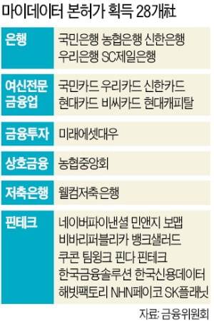 네이버와 토스를 비롯해 대형 은행, 카드사, 핀테크기업 등 28개 업체가 마이데이터(본인신용정보관리업) 본허가를 따냈다.