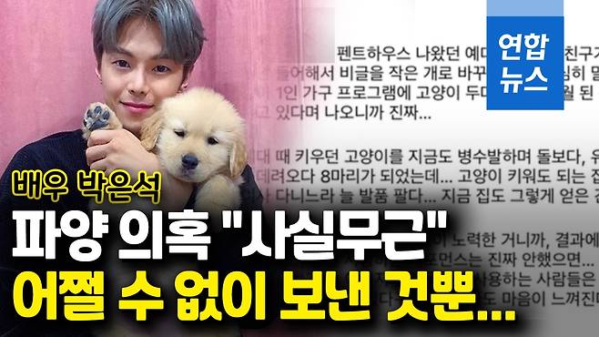 박은석의 소속사 후너스엔터테인먼트는 27일 입장문을 내고 "확인 결과 제기된 반려동물 관련 의혹은 전혀 사실이 아니다"라며 "애견 샵에서 동물을 데리고 왔다는 의혹, 비글과 관련된 글은 전혀 사실이 아니다"라고 밝혔는데요.