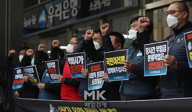 지난 21일 택배 업계 노사와 정부는 분류작업을 사측이 책임지는 내용을 골자로 한 1차 합의문에 서명했다. 하지만 택배 노조는 택배사들이 일방적으로 사회적 합의를 파기했다며 총파업을 선언, 29일부터 배송업무에만 전념한다고 밝혔다.