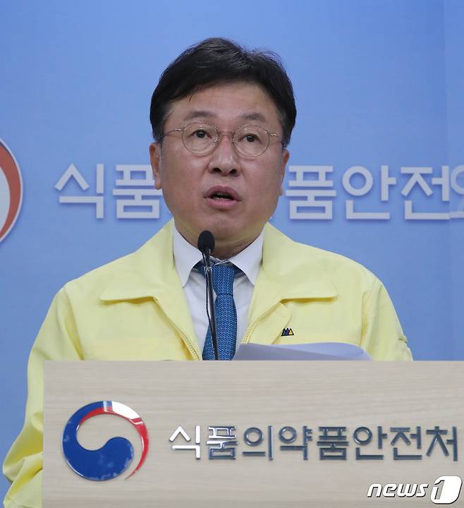 (청주=뉴스1) 장수영 기자 = 이동희 식품의약품안전평가원장이 27일 충북 청주시 오송읍 식약처 브리핑실에서 코로나19 치료제 중앙약사심의위원회 회의결과를 발표하고 있다.