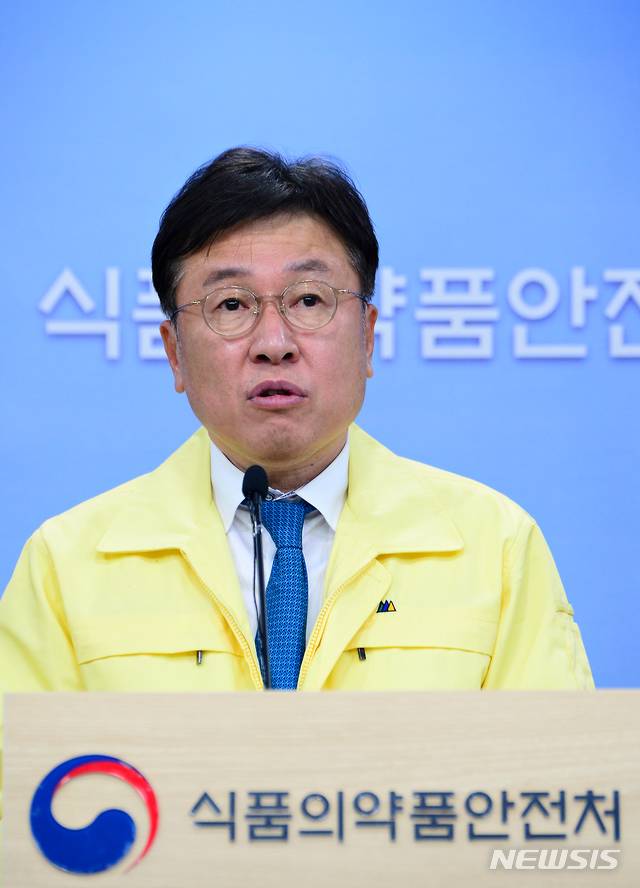 [청주=뉴시스] 인진연 기자 =이동희 식품의약품안전평가원장이 27일 충북 청주시 오송읍 식품의약품안전처에서 열린 '셀트리온 코로나19 치료제 중앙약사심의위원회 회의' 결과에 대해 브리핑실에서 설명하고 있다. 2021.01.27.