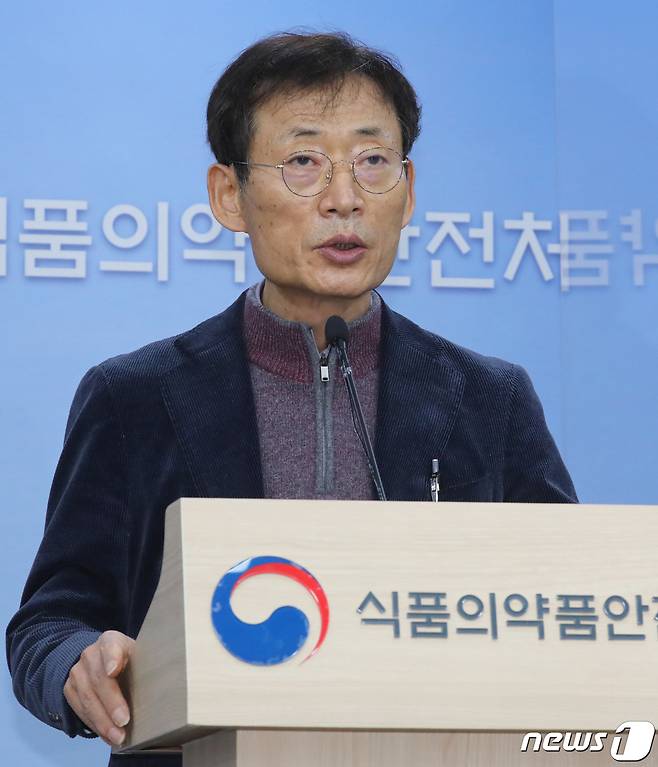 (청주=뉴스1) 장수영 기자 = 오일환 중앙약사심의위원회 위원장이 27일 충북 청주시 오송읍 식약처 브리핑실에서 코로나19 치료제 중앙약사심의위원회 회의결과를 발표하고 있다.