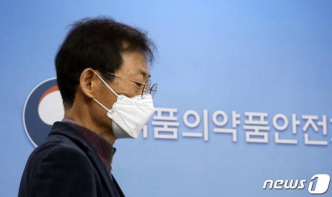 (청주=뉴스1) 장수영 기자 = 오일환 중앙약사심의위원회 위원장이 27일 충북 청주시 오송읍 식약처 브리핑실에서 코로나19 치료제 중앙약사심의위원회 회의결과를 발표하기 위해 단사에 서고 있다.