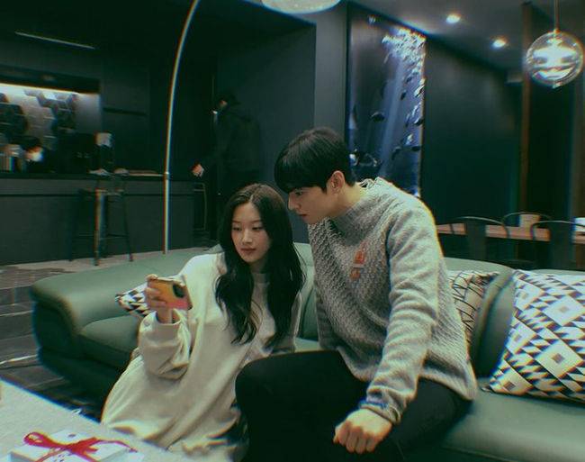 공개된 사진 속에서 문가영은 차은우와 한 거실에서 초밀착하며 무언가를 응시하고 있는 모습.