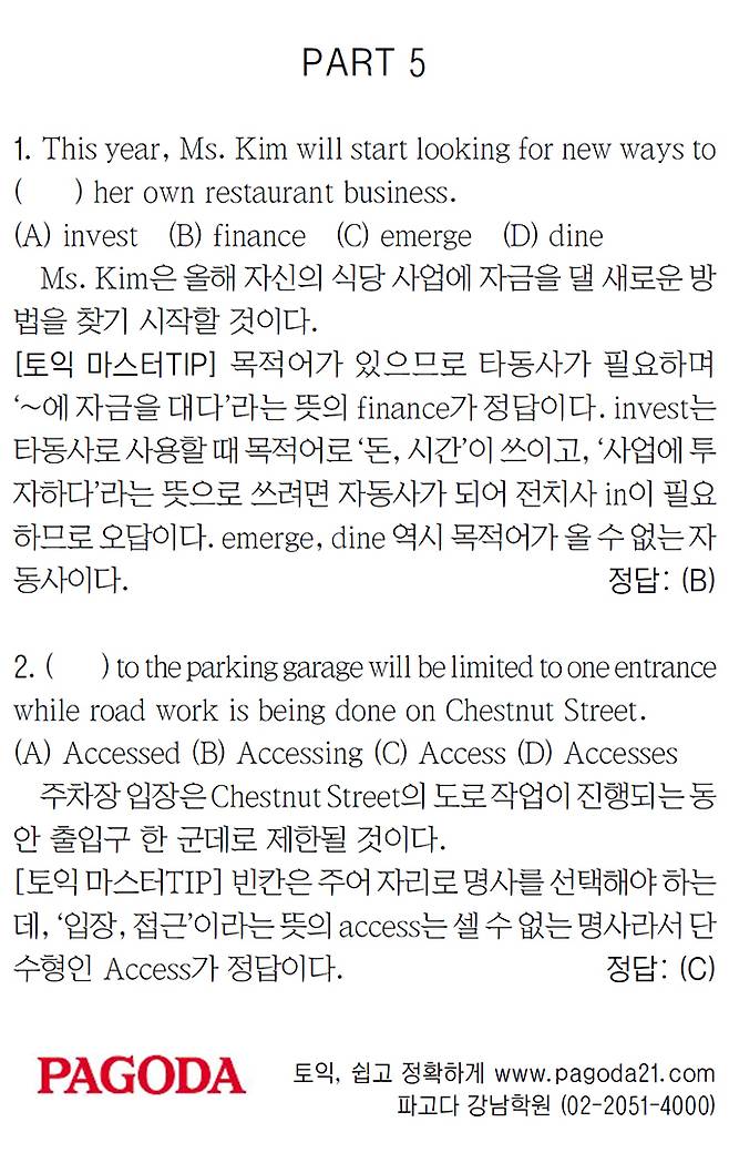 [파고다 강남 스타토익 RC유나신] PART 5