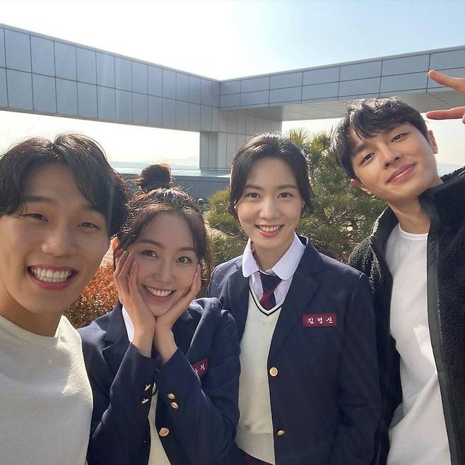 정우연, 교복 입고 미소 활짝 '밥이 되어라' 배우들과 즐거운 촬영 현장 [SNS★컷]