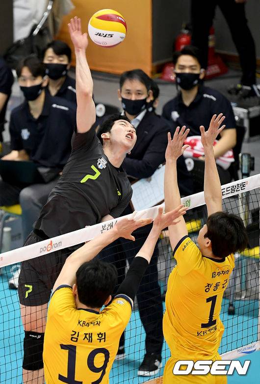 [OSEN=의정부, 김성락 기자] 27일 오후 경기 의정부실내체육관에서 '도드람 2020-2021 V리그' 남자부 KB손해보험과 현대캐피탈의 경기가 열렸다.