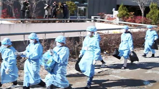 코로나19 확진 판정을 받고 격리 치료시설로 이동하기 위해서입니다.