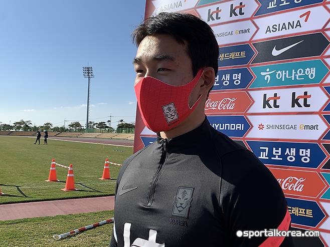 송민규는 27일 훈련에 앞서 취재진과 만난 자리에서 영플레이어 동기 이동률에 대한 생각을 밝혔다.