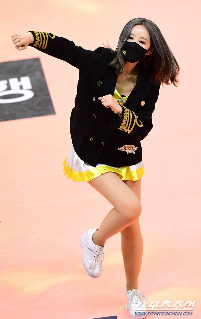 2020-2021 프로배구 V리그 KB손해보험과 현대캐피탈의 경기가 27일 의정부실내체육관에서 열렸다. KB손해보험 치어리더 오채현이 흥겨운 댄스 공연을 펼치고 있다. 의정부=최문영 기자 deer@sportschosun.com /2021.01.27/