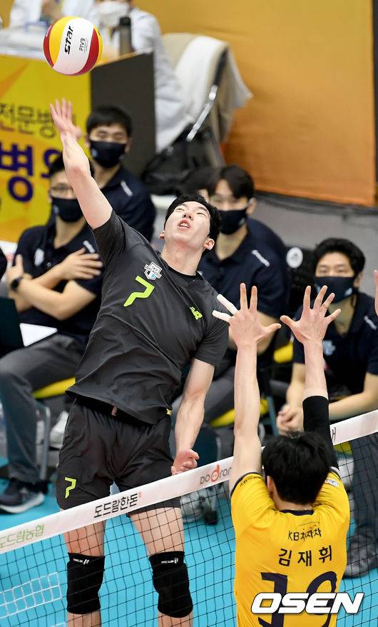 [OSEN=의정부, 김성락 기자] 27일 오후 경기 의정부실내체육관에서 '도드람 2020-2021 V리그' 남자부 KB손해보험과 현대캐피탈의 경기가 열렸다.