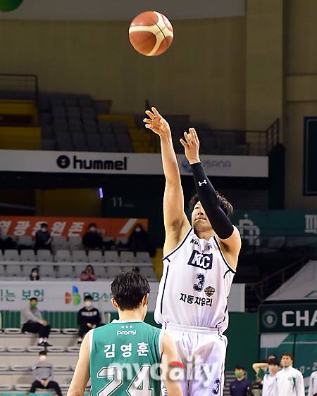 [마이데일리 = 원주(강원도) 한혁승 기자] KCC 이정현이 27일 오후 강원도 원주종합체육관에서 열린 2020-2021 프로농구 DB-KCC 경기에서 슛을 던지고 있다.- ⓒ마이데일리(www.mydaily.co.kr). 무단전재&재배포 금지 -
