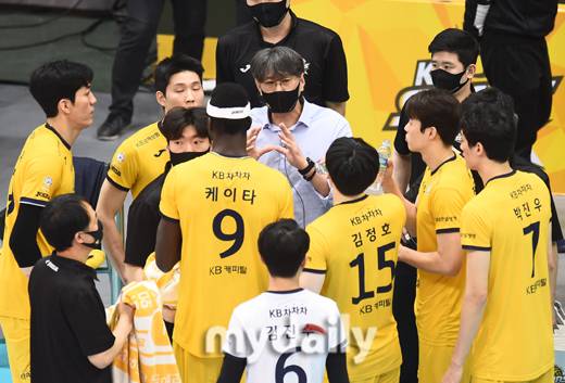 [마이데일리 = 의정부 곽경훈 기자] KB손해보험 이상열 감독이 27일 오후 경기도 의정부체육관에서 진행된 '2020-2021 도드람 V-리그' KB손해보험-우리카드의 경기에서 작전 지시를 하고 있다.- ⓒ마이데일리(www.mydaily.co.kr). 무단전재&재배포 금지 -