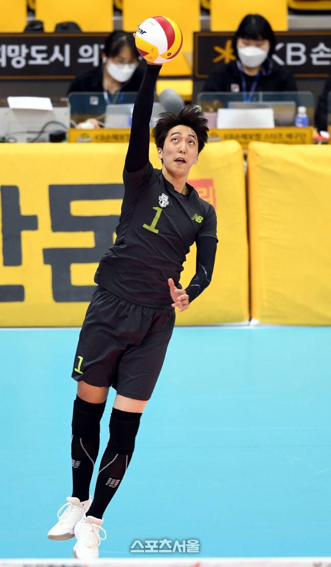 현대캐피탈 차영석이 가 24일 의정부체육관에서 열린 2020-2021 V리그 KB손해보험과 현대캐피탈의 경기에서 서브를 넣고 있다.