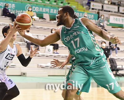 [마이데일리 = 원주(강원도) 한혁승 기자] DB 메이튼(오른쪽)이 27일 오후 강원도 원주종합체육관에서 열린 2020-2021 프로농구 DB-KCC 경기에서 리바운드를 잡고 있다.- ⓒ마이데일리(www.mydaily.co.kr). 무단전재&재배포 금지 -