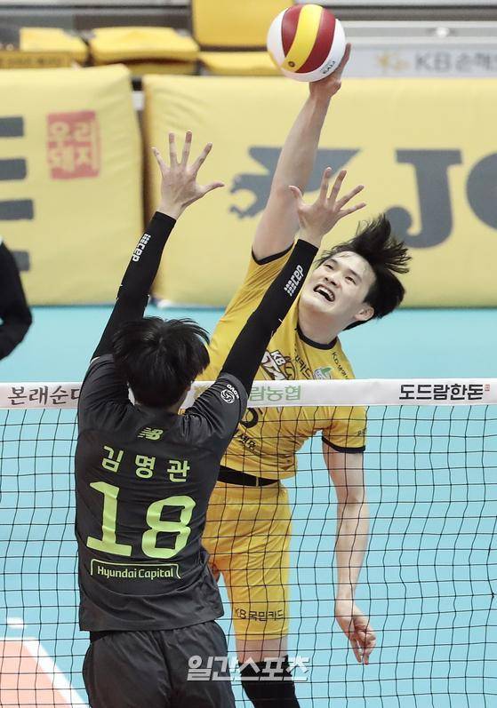 2020~2021 프로배구 V리그 남자부 KB손해보험과 현대캐피탈의 경기가 27일 오후 경기 의정부실내체육관에서 열렸다. 김정호가 공격을 하고 있다.