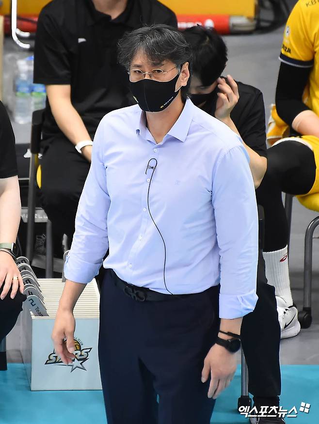 [엑스포츠뉴스 의정부, 윤다희 기자] 27일 오후 경기도 의정부실내체육관에서 열린 ‘2020-2021 도드람 V리그’ KB손해보험과 현대캐피탈의 경기, KB손해보험 이상열 감독이 경기를 지켜보고 있다.