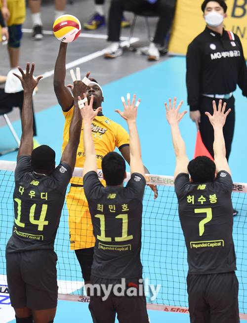 [마이데일리 = 의정부 곽경훈 기자] KB손해보험 케이타가 27일 오후 경기도 의정부체육관에서 진행된 '2020-2021 도드람 V-리그' KB손해보험-우리카드의 경기에서 공격을 시도하고 있다.- ⓒ마이데일리(www.mydaily.co.kr). 무단전재&재배포 금지 -