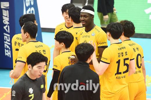 [마이데일리 = 의정부 곽경훈 기자] KB손해보험 케이타가 27일 오후 경기도 의정부체육관에서 진행된 '2020-2021 도드람 V-리그' KB손해보험-우리카드의 경기에서 세트스코어 3-1(25-23, 17-25, 25-20, 25-17)로 승리한뒤 기뻐하고 있다.