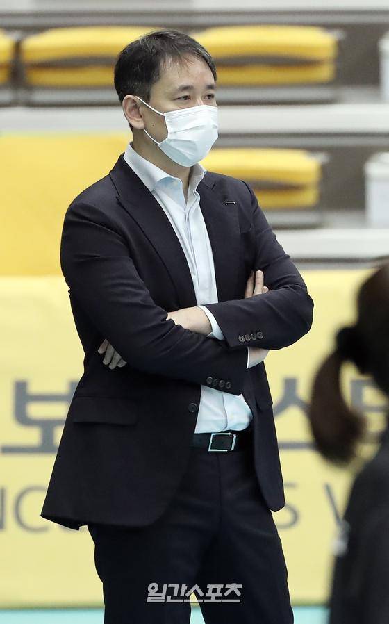 2020~2021 프로배구 V리그 남자부 KB손해보험과 현대캐피탈의 경기가 27일 오후 경기 의정부실내체육관에서 열렸다. 최태웅 감독이 4세트 점수차가 벌어지자 굳은 표정을 짓고 있다.