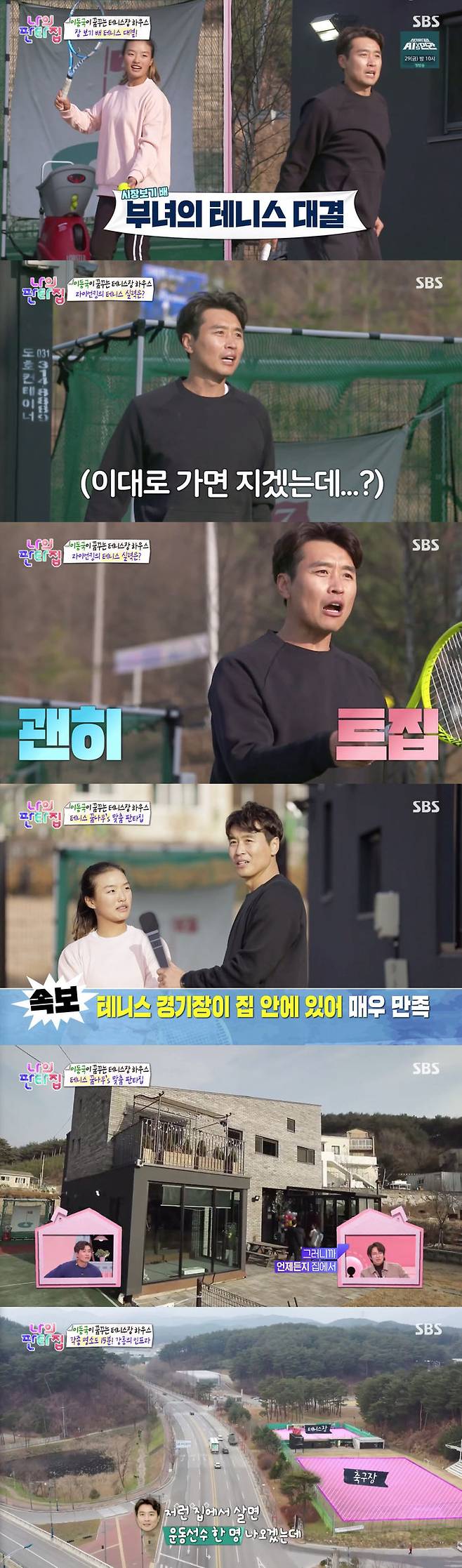 이에 이동국도 "요즘은 코트 예약도 힘든데 정말 저런 집에서 지낼 수 있다면 편하고 좋을 것 같다"라고 했다. 그리고 재아는 "시간의 제약도 없이 하고 싶을 때는 바로 나와서 테니스를 하고, 또 바로 집에 갈 수도 있고 해서 좋다"라고 말했다.