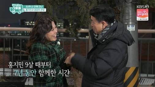 홍지민과 관장님은 30여 년 만에 재회했고, 홍지민은 관장님의 얼굴을 보자마자 눈물을 쏟았다.