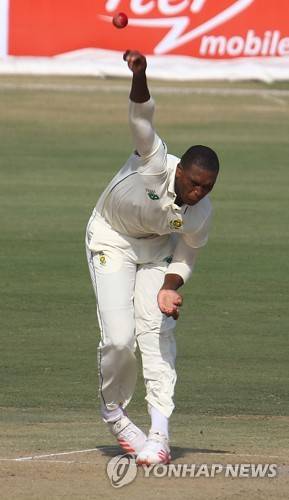 epa08968305 South African bowler Lungi Ngidi bowls during the second day of first cricket test match between Pakistan and South Africa in Karachi, Pakistan, 27 January 2021. The South African cricket squad arrived in Pakistan for their first tour consisting of two Test and three T20 matches after a 14-year break. EPA/SHAHZAIB AKBER