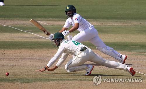 epa08968323 Pakistani batsman Azhar Ali plays a shot during the second day of first cricket test match between Pakistan and South Africa in Karachi, Pakistan, 27 January 2021. The South African cricket squad arrived in Pakistan for their first tour consisting of two Test and three T20 matches after a 14-year break. EPA/SHAHZAIB AKBER