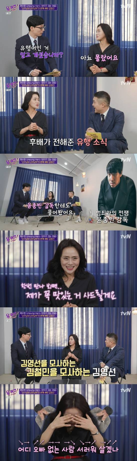 27일 방송된 tvN '유 퀴즈 온 더 블럭'에서는 '언성 히어로' 특집으로 꾸며진 가운데 김영선이 게스트로 출연한 장면이 전파를 탔다.