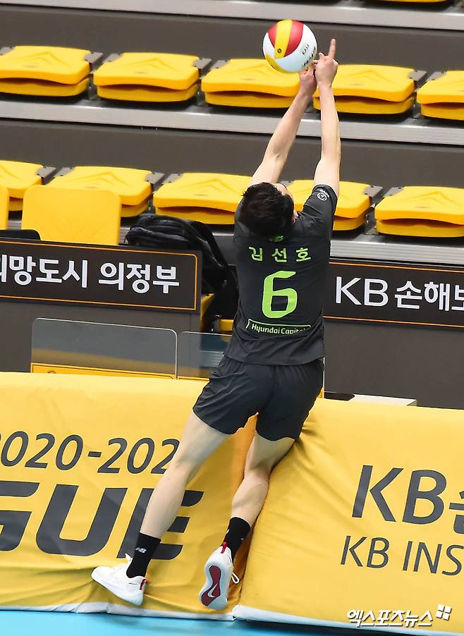 현대캐피탈 김선호가 디그를 하고 있다.