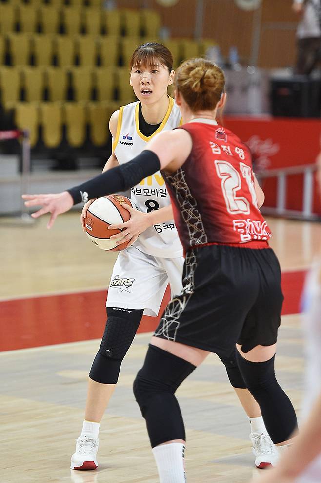김민정이 활약한 KB스타즈는 27일 부산 스포원파크 BNK 센터에서 열린 KB국민은행 Liiv M 2020-2021 여자프로농구 부산 BNK와의 5라운드 맞대결에서 73-62로 이겼다.