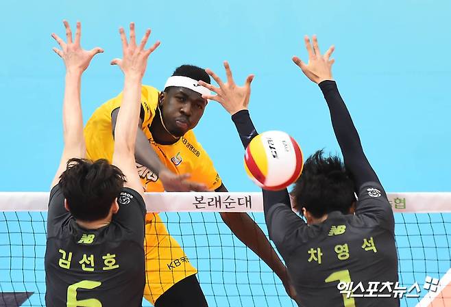KB손해보험 케이타가 공격을 시도하고 있다.