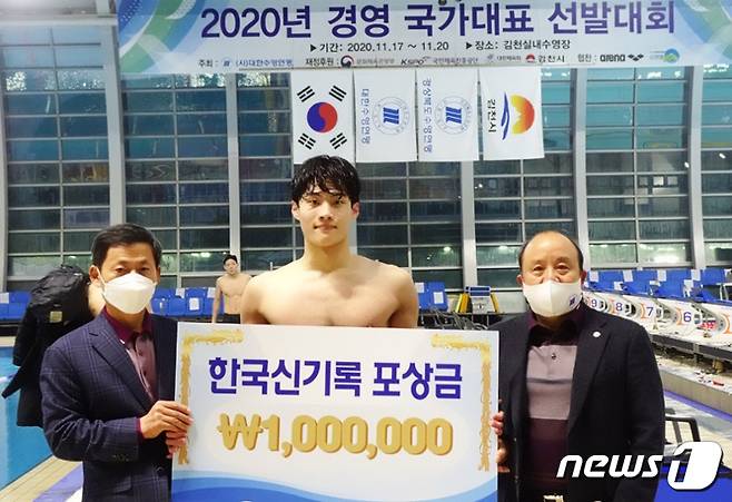 황선우는 지난해 11월18일 경북 김천실내수영장에서 열린 2020 경영 국가대표 선발대회 남자 자유형 200m에서 1분45초92를 기록했다.