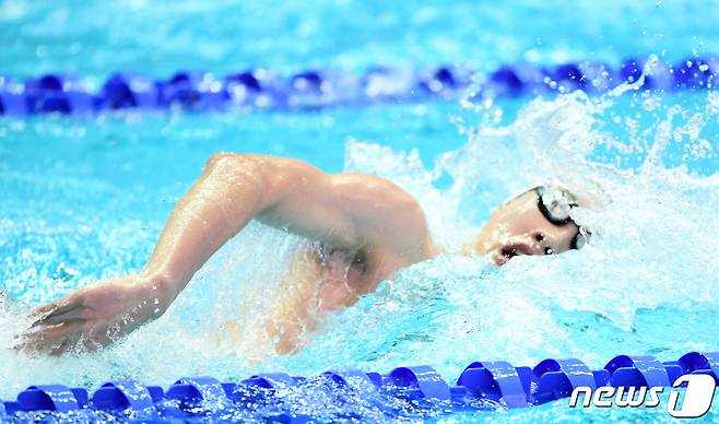 황선우는 지난해 11월18일 경북 김천실내수영장에서 열린 2020 경영 국가대표 선발대회 남자 자유형 200m에서 1분45초92를 기록했다. 이는 종전 주니어 세계 최고 기록인 호주 엘리야 위닝튼의 1분46초13(2018년)을 0.21초 앞당긴 기록이다. 사진은 지난 2019년 광주세계수영선수권대회 남자 계영 800m 예선 2조 경기에서 역영하는 황선우의 모습.(뉴스1 DB) 2021.1.27/뉴스1