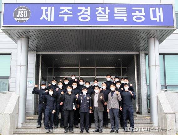 강 청장은 이날 제주시 애월읍 유수암리에 있는 경찰특공대도 방문하고 체계적인 교육·훈련을 통해 유사시 완벽한 현장대응 능력을 유지해줄 것을 당부했다.