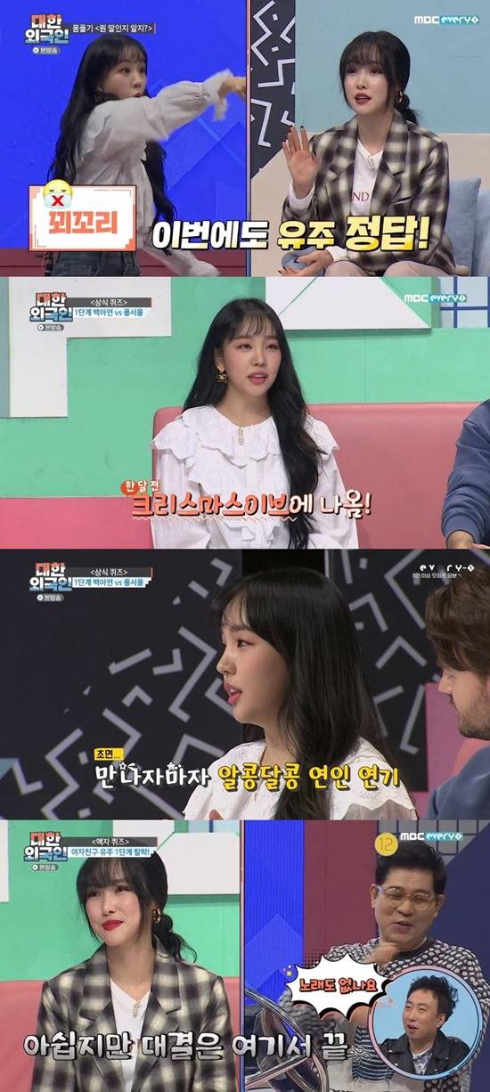 27일 방송된 MBC에브리원 '대한외국인'은 '고막여친vs개그여친' 특집으로 백아연, 여자친구 유주, 이은형, 신기루가 출연해 퀴즈 대결을 펼쳤다.