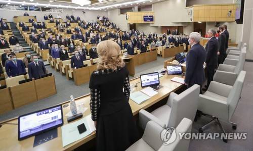 In this photo provided by the State Duma, deputies attend a session at the State Duma, the Lower House of the Russian Parliament in Moscow, Russia, Wednesday, Jan. 27, 2021. Both houses of parliament voted unanimously Wednesday to extend New START treaty for five years, a fast-track move that comes days before the last remaining U.S.-Russian arms control pact is due to expire. (The State Duma, The Federal Assembly of The Russian Federation via AP) AP PROVIDES ACCESS TO THIS PUBLICLY DISTRIBUTED HANDOUT PHOTO PROVIDED BY THE STATE DUMA, THE FEDERAL ASSEMBLY OF THE RUSSIAN FEDERATION ; MANDATORY CREDIT.