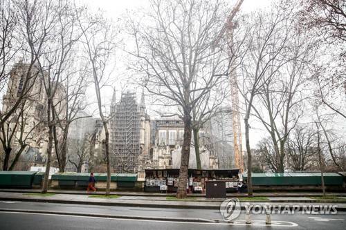 epa08968626 A woman walks next to a closed bookseller kiosk as another is open, along the Seine river, near Notre-Dame Cathedral in Paris, France, 27 January 2021. Most of bookseller kiosks were closed recently after the number of tourists drastically decreased amid the coronavirus pandemic. EPA/MOHAMMED BADRA