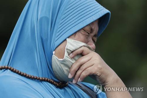 epa08968714 A relative cries during a funeral of a Covid-19 victim at Bambu Apus Covid-19 dedicated cemetery in Jakarta, Indonesia, 27 January 2021. Indonesia has reported more than one million COVID-19 cases since the beginning of the pandemic, the highest number in Southeast Asia. EPA/MAST IRHAM