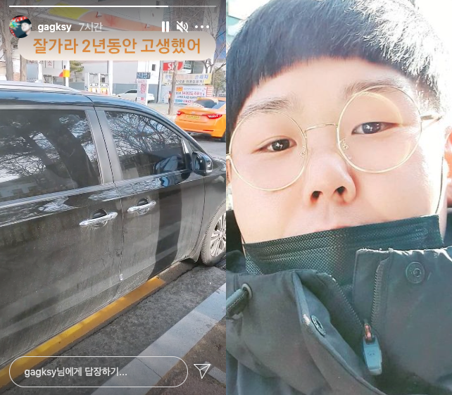 사진에는 검은색 차량이 담겨 있다. 김수영은 2년간 잘 타고 다닌 차와 작별하며 인증샷까지 남겨 보는 이들을 훈훈하게 만든다.