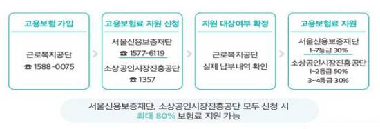 고용보험료 지원은 고용보험에 신규 가입한 1인 자영업자에게 월 납부액의 최대 80%(서울시 30%, 정부 50%)를 환급해주는 제도다.
