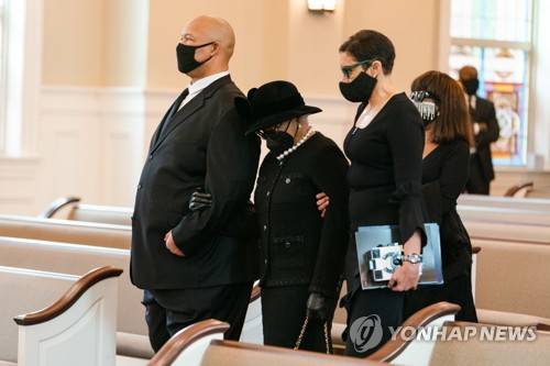 epa08970126 A handout photo made available by the Atlanta Braves showing (L-R) Hank Aaron Jr., Billye Aaron, Ceci Aaron, and Gail Aaron arrive for funeral services for Henry 'Hank' Aaron, longtime Atlanta Braves player and Hall of Famer at Friendship Baptist Church in Atlanta, Georgia, USA, 27 January 2021. EPA/KEVIN D. LILES / ATLANTA BRAVES / HANDOUT HANDOUT EDITORIAL USE ONLY/NO SALES