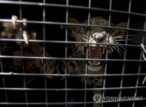 epa08970191 View of a recently rescued jaguar cub, at the Nicaraguan National Zoo in Ticuantepe, Managua, Nicaragua, 27 January 2021. Two jaguar cubs, only three and a half months old, were rescued from a house in the Sandy Bay community, in northern Nicaragua, after being offered for illegal sale while the mother was shot and killed by villagers. The male and female jaguars were underweight when they were rescued. The director of the National Zoo, Eduardo Sacasa, became aware of the case after seeing a publication on social networks where the baby jaguars were offered for illegal sale for a price of 400 US dollar. EPA/Jorge Torres
